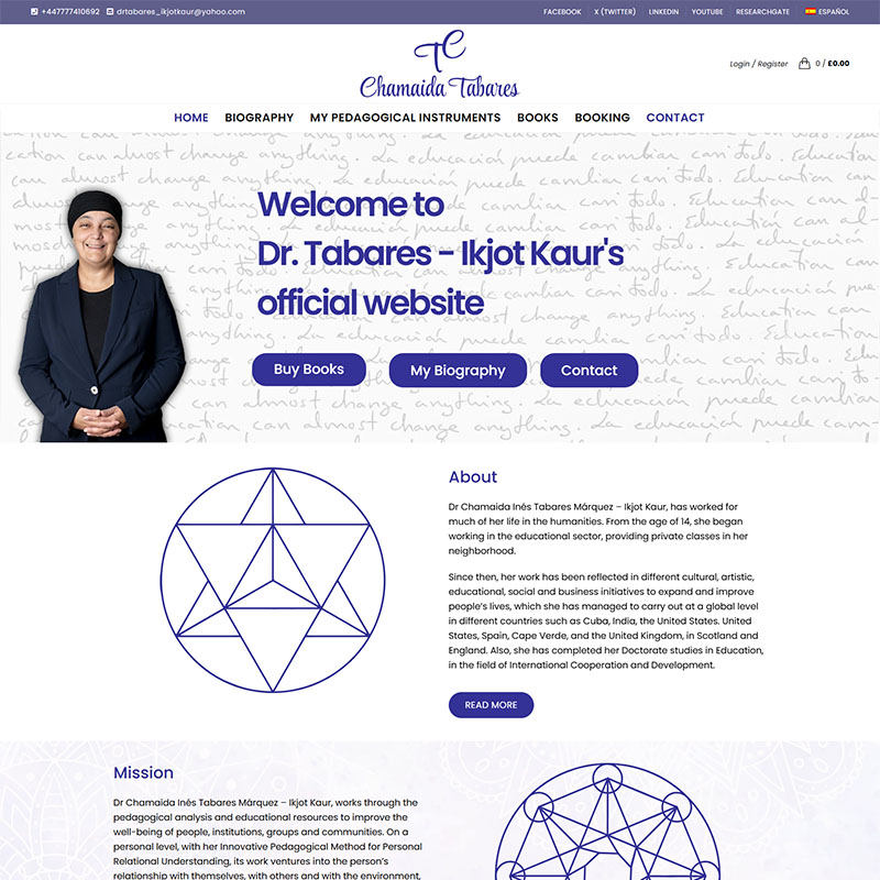 Двуезичен сайт за писател и учител Чамейда Табарес. Онлайн магазин и система за запазване и плащане на уроци онлайн.